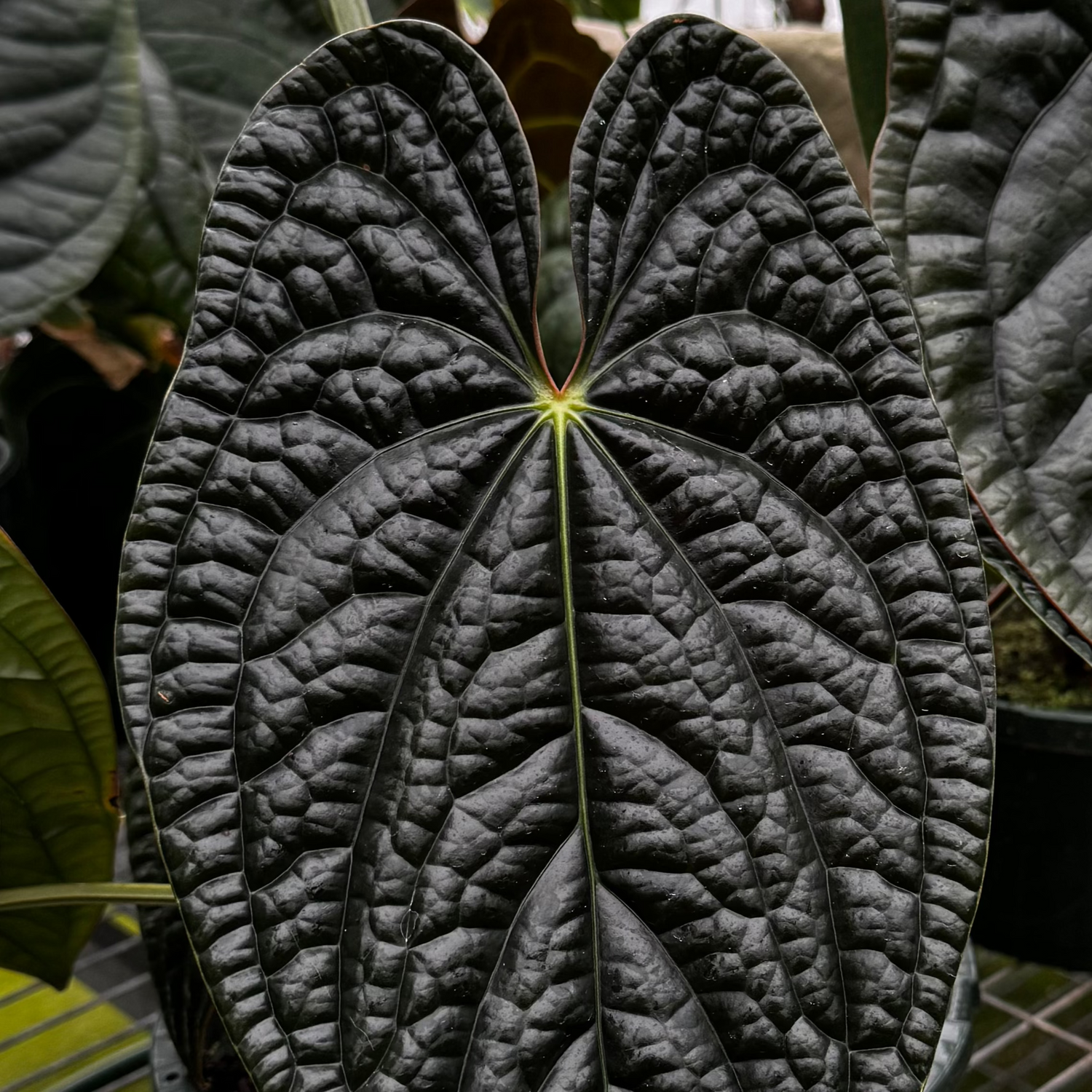 This species is known for its longer leaf shape, bullate texture and high pointed lobes. It is regarded as one of the hardier Anthurium to grow and has proven to be a staple in many collections.
