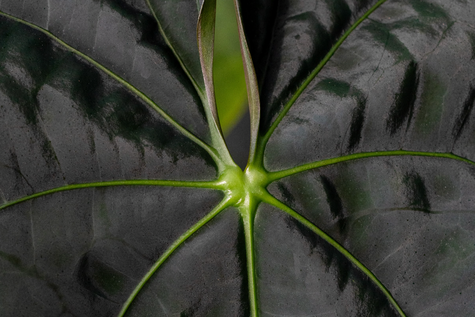 This species displays incredibly dark foliage and bright white veins. It's traits are also heavily influential in first generation hybrids.